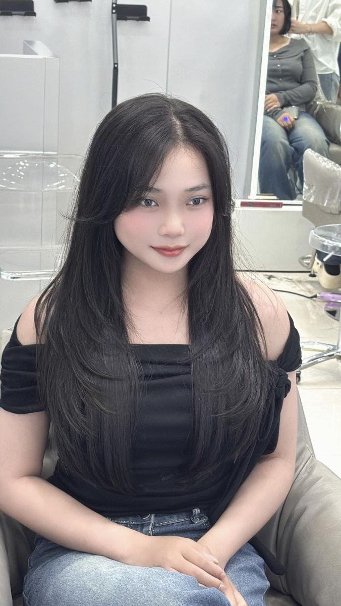 Kiểu tóc layer nữ dài – nhẹ nhàng, sang trọng, giúp gương mặt cân đối và thanh thoát hơn.