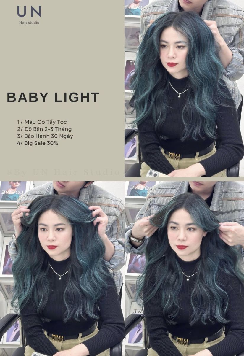Tại UN Hair Studio, Baby Light được xử lý theo nền tóc và tông da riêng, đảm bảo lên màu đúng – tóc vẫn mềm – giữ màu lâu.